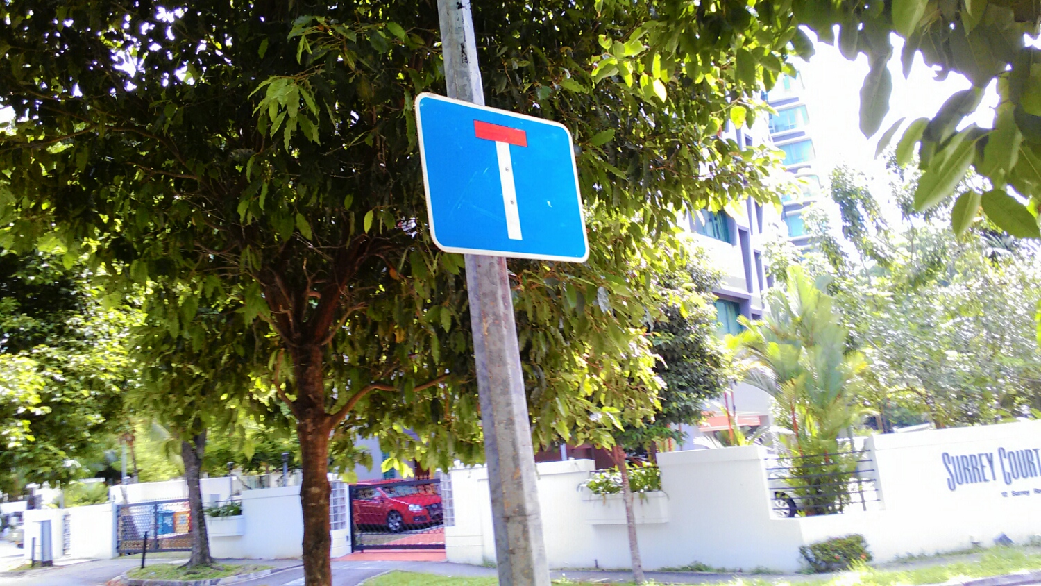 シンガポールの標識 トンカチにしか見えないけど"この先行き止まり"ですね